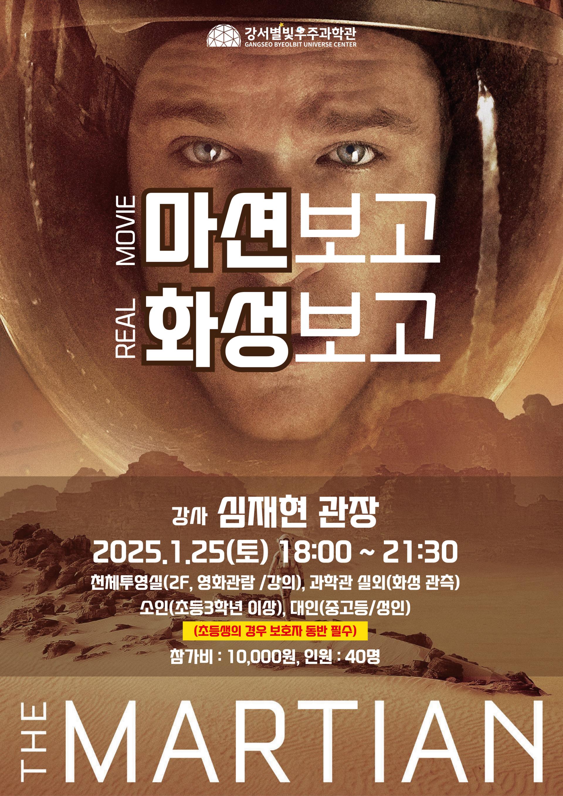 - 장소 : 천체투영실(2F, 영화관람 및 강의), 과학관 실외(화성 관측)